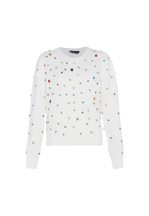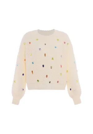 faina Trui turquoise / lichtblauw / rood / wolwit