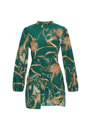 faina Jurk goudgeel / donkergroen / rood / zwart / wit