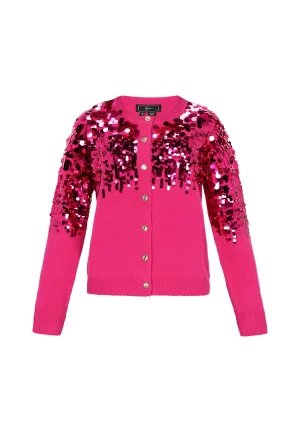 faina Gebreid vest donkerlila / fuchsia / parelwit