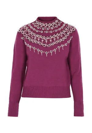 faina Trui bessen / zwart / parelwit