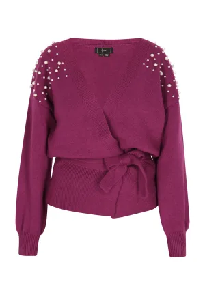 faina Gebreid vest cyclaam / donkerroze / parelwit
