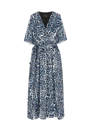 faina Jurk ‘Festive’ cyaan blauw / zwart / wit