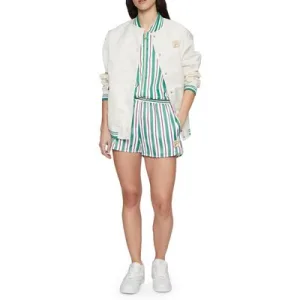 FILA Lassance Striped Cropped Satin Polo Full-zip Shirt Antique W