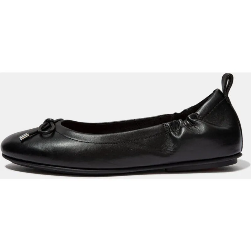Women’s Fit Flop Allegro Bow Leather Ballet Pumps in Black