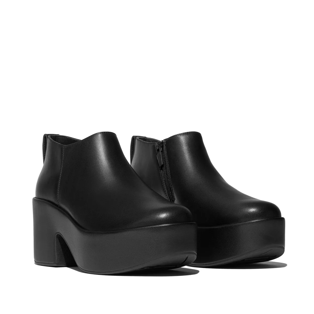FitFlop Platvorms Hakken Korte Leren Dames Zwarte Laarsjes