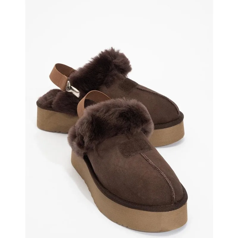 Olessa leren pantoffel met bont