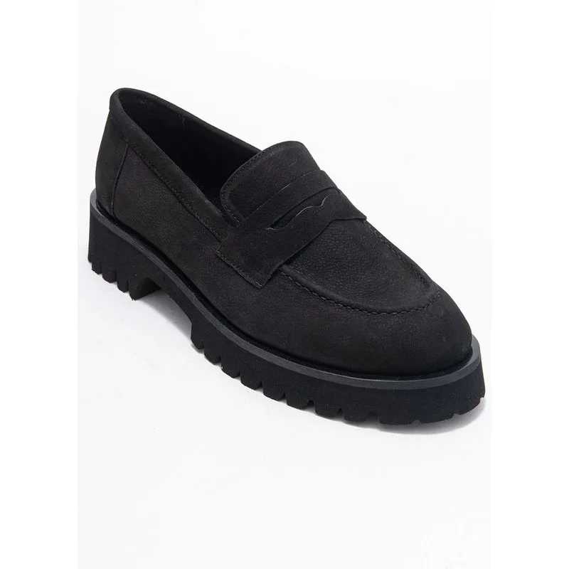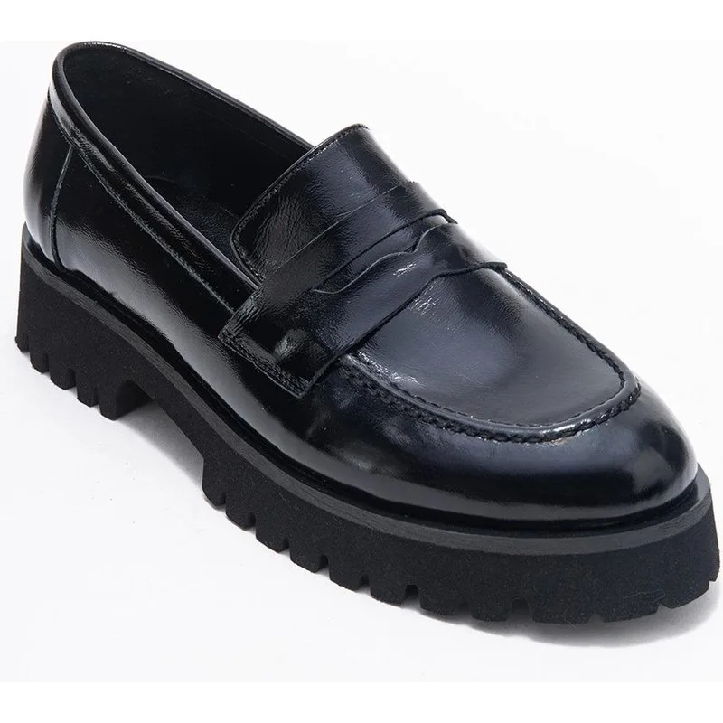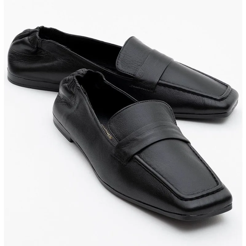 Noir Leren Plat Loafers Dames
