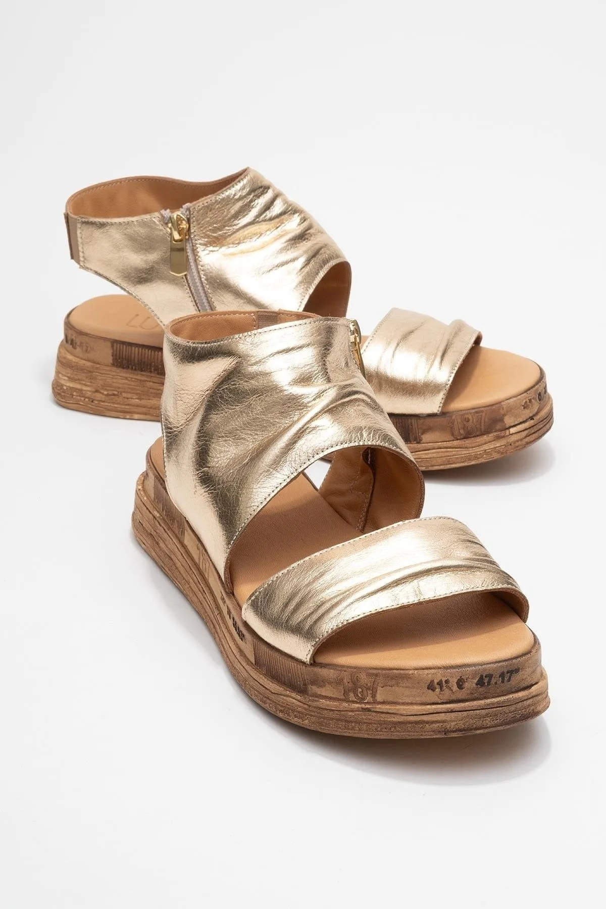 Lunas Leer Side-Zip Plat Hak Sandaal
