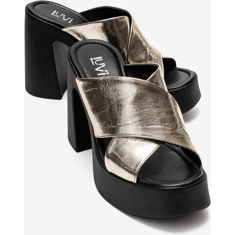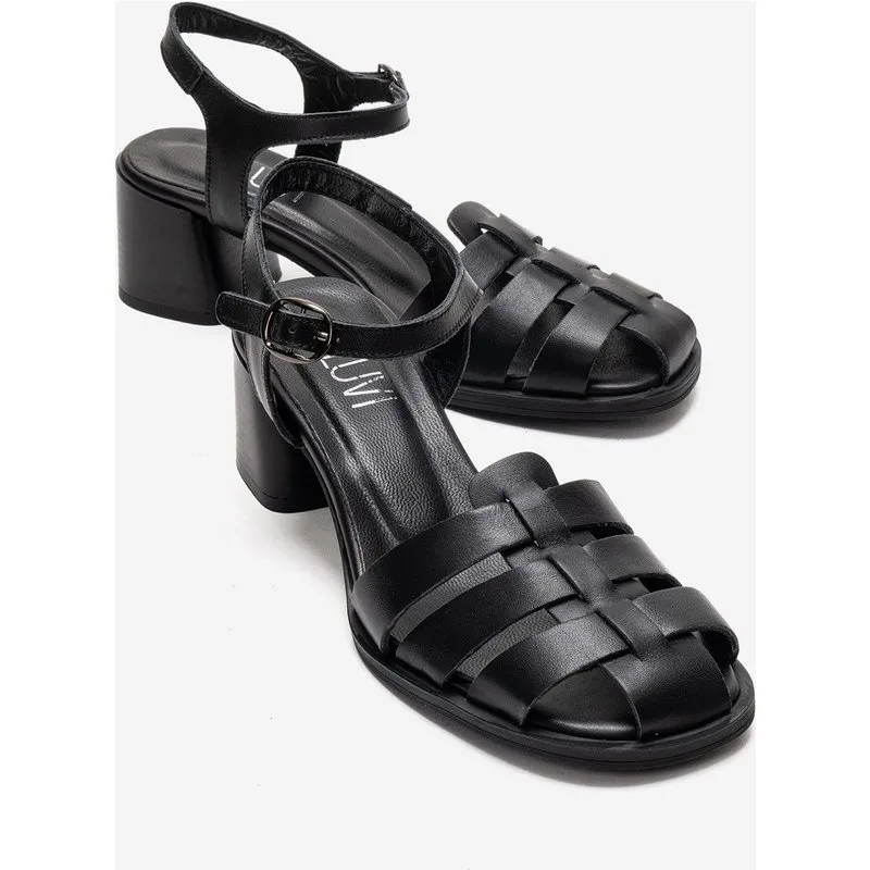 Devora Leren Blokhak Sandaal