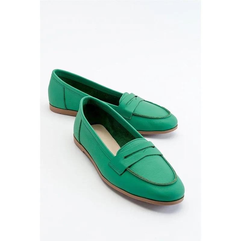Jade Leren Plat Loafers Dames