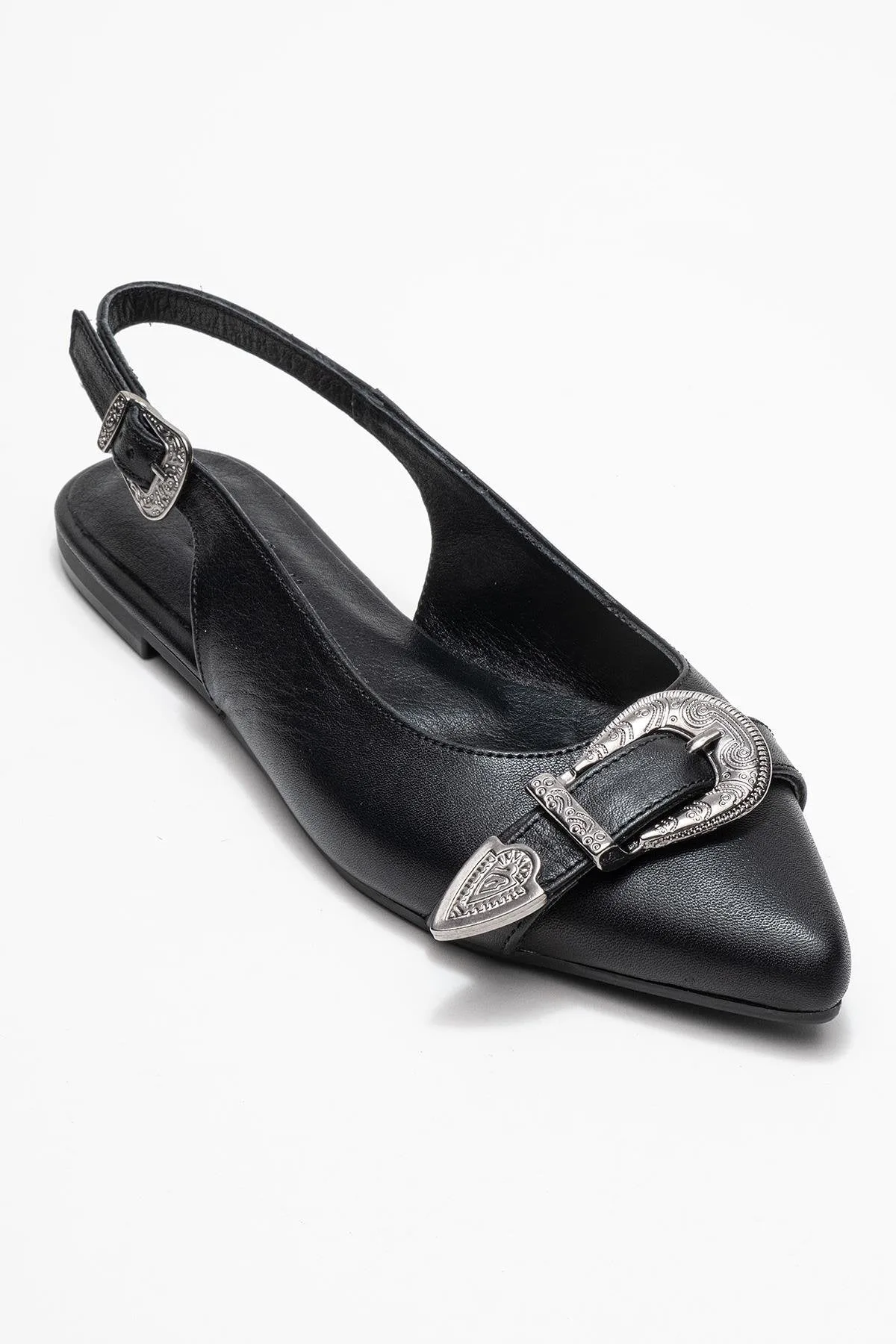 Cordelia Leer Puntig Neus Gesp Sandaal