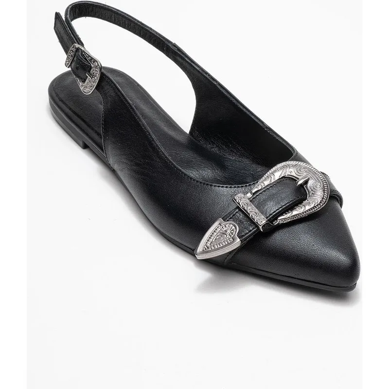 Cordelia Leer Puntig Neus Gesp Sandaal