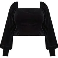Forever New Hazel Curve Velvet Josephine Top Black