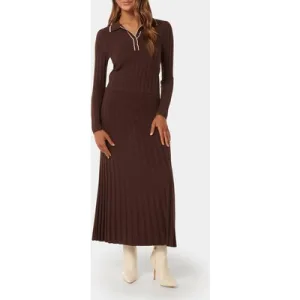 Forever New Edith Petite Knitted Polo Top Chocolate