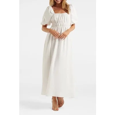 Forever New Nadia Square Neck Linen Midi Porcelain