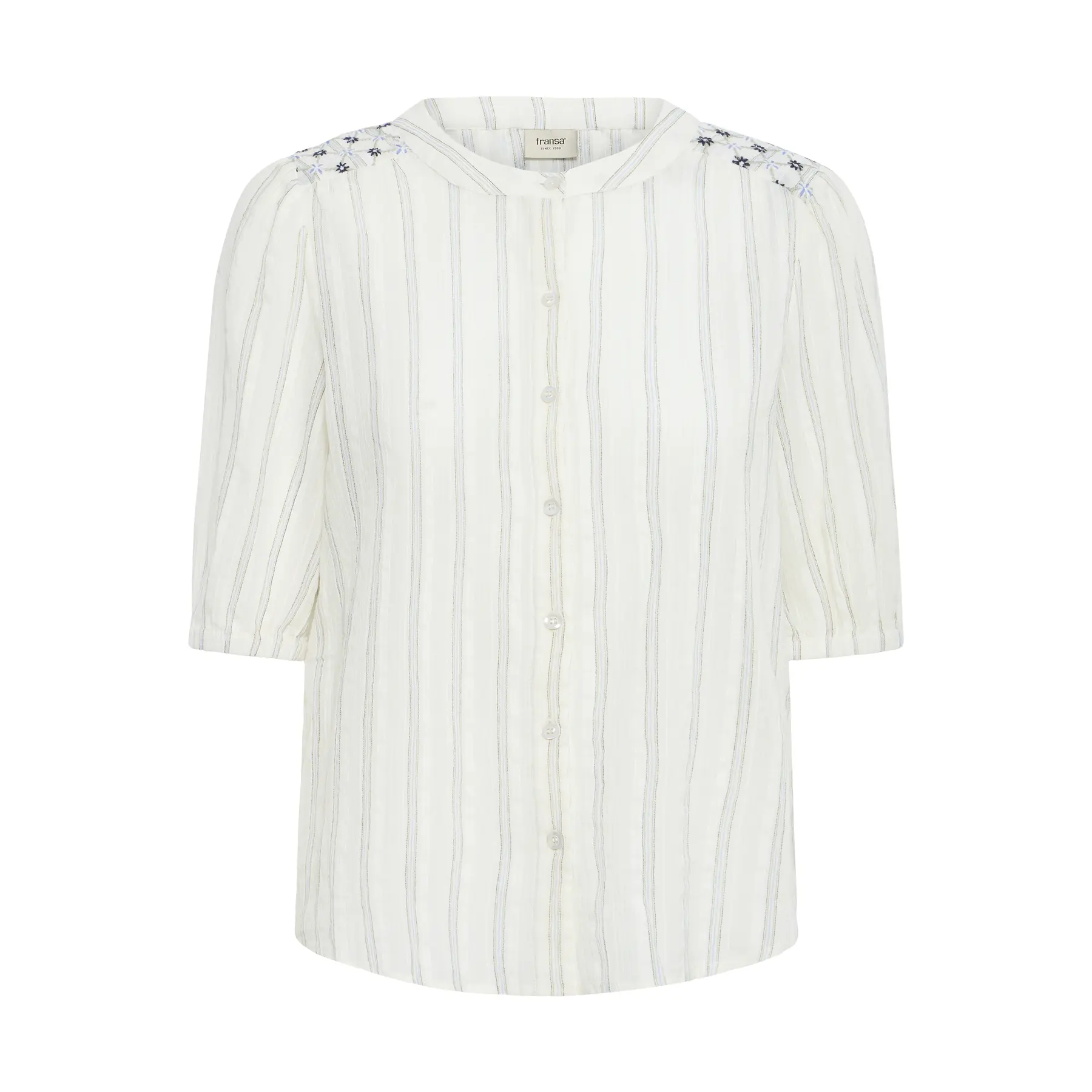 Fransa Blouse ‘FRZASHIRT’ lichtblauw / wolwit