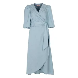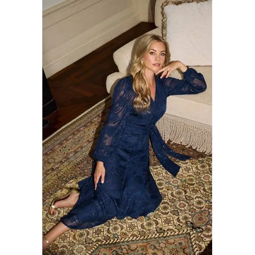 Freebird gebloemde wikkel-/overslagjurk met lurex donkerblauw