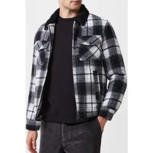 French Connection Borg Collar Checked Jacket Black White
