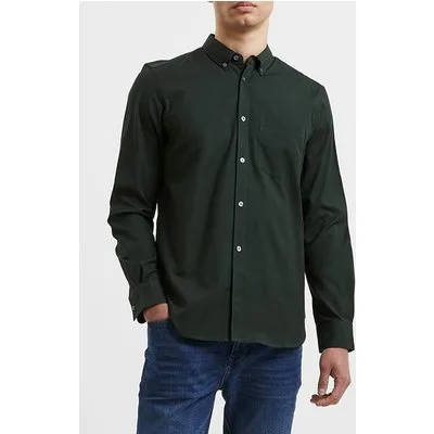 French Connection Oxford Long Sleeve Shirt Dark Green Solid