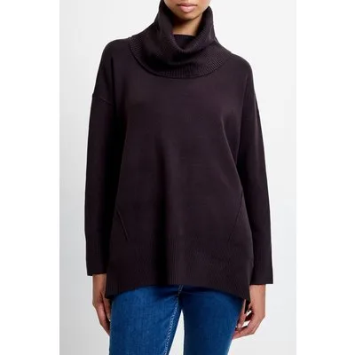 French Connection Babysoft Ribbed Cowl Neck Jumper Chocolate Ganache