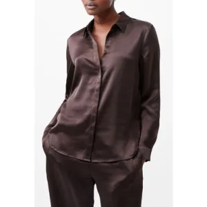 French Connection Irina Satin Slvlss Cowl Nk Drs Russet Brown