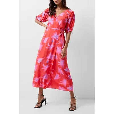 French Connection Elko Jaquard Flutted Midi Dress Ballet Pink Multi