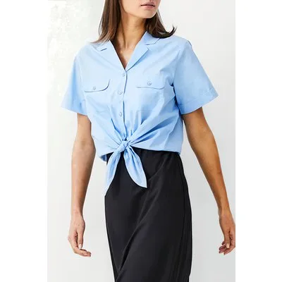 French Connection Tie Front Poplin Shirt Placid Blue