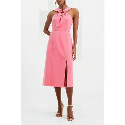 French Connection Eco Crepe Ring Halterneck Dress Camellia Rose