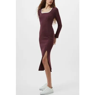 French Connection Rassia Rib Sq Nk Midi Dress Burgandy/porc Cream