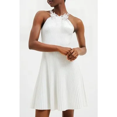 French Connection Mari Knit Lace Mix Dress White