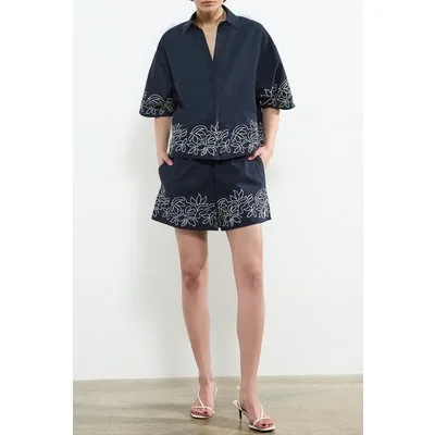 French Connection Alissa Cotton Popover Navy/white