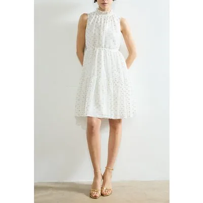 French Connection Arlo Jacquard Tiered Dress Summer White/gold