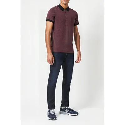 French Connection Contrast Collar Polo Shirt Bordeaux Mel/dk Navy
