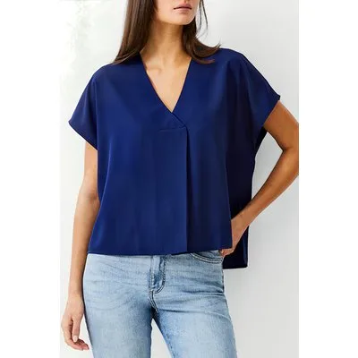French Connection Vee Boxy Crepe Light Top Dk Navy