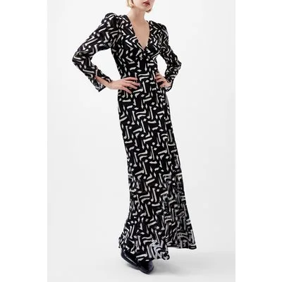 French Connection Diandra Satin Burnout Dress Black/cream