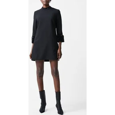French Connection Lux Daux Fur 3/4 Cuff Dress S Black