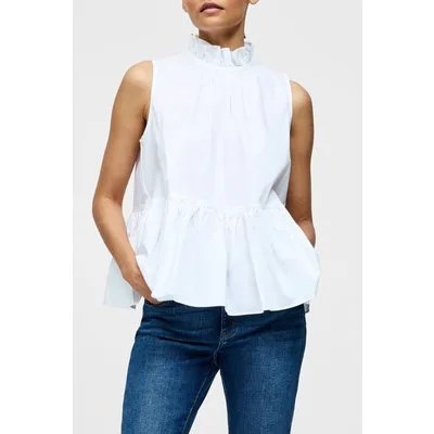 French Connection High Neck Sleeveless Poplin Top Linen White