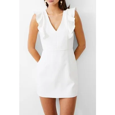 French Connection Frill Vee Tailored Dress Short Summer White