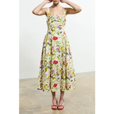 French Connection Monica Barletta Poplin Midi Dr White Multi