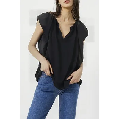 French Connection Crepe Light V Neck Blouse Black