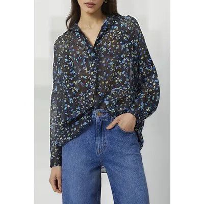 French Connection Macee Micro Wstrn Denim Ls Jkt Blue