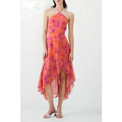 French Connection Arla Hallie Crinkle Ruffle Coral