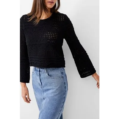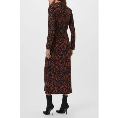 French Connection Sasia Rib Puff Slv Midi Dresss Black