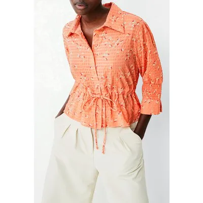 French Connection Doria Crinkle Ruffle Front Top Golden Glaze Multi