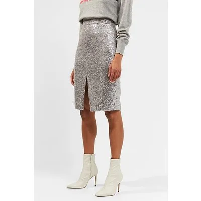 French Connection Eshka Sequin Skirt Silver/ Moon Rock