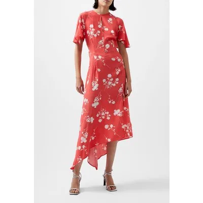 French Connection Alessandra Asymetric Dress Cayenne Red/white