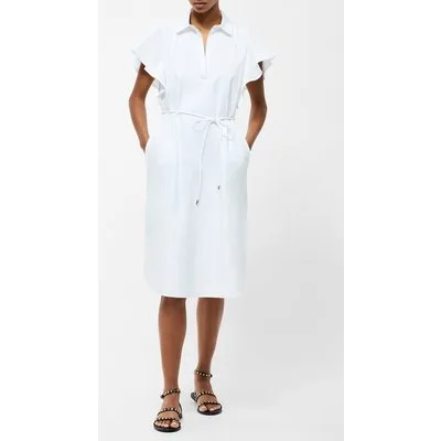 French Connection Cambria Cotton Belted Dress Linen White