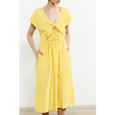 French Connection Barletta Poplin Tie Midi Dress Butter Yellow