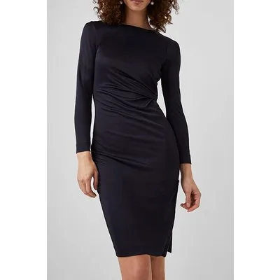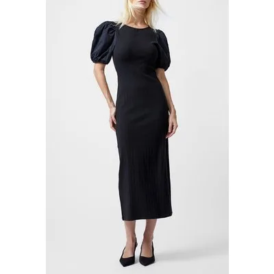 French Connection Sasia Rib Puff Slv Midi Dresss Black