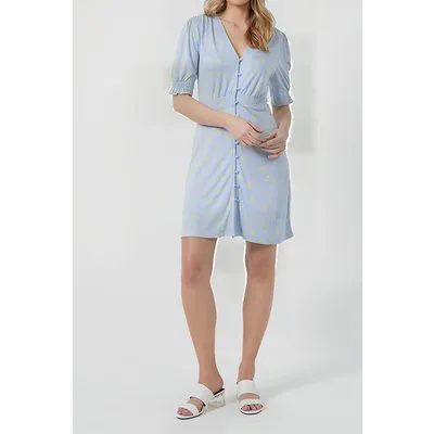 French Connection Sara-bonita Eco V Nk Ss Dress Cloud Bl/butter Yell